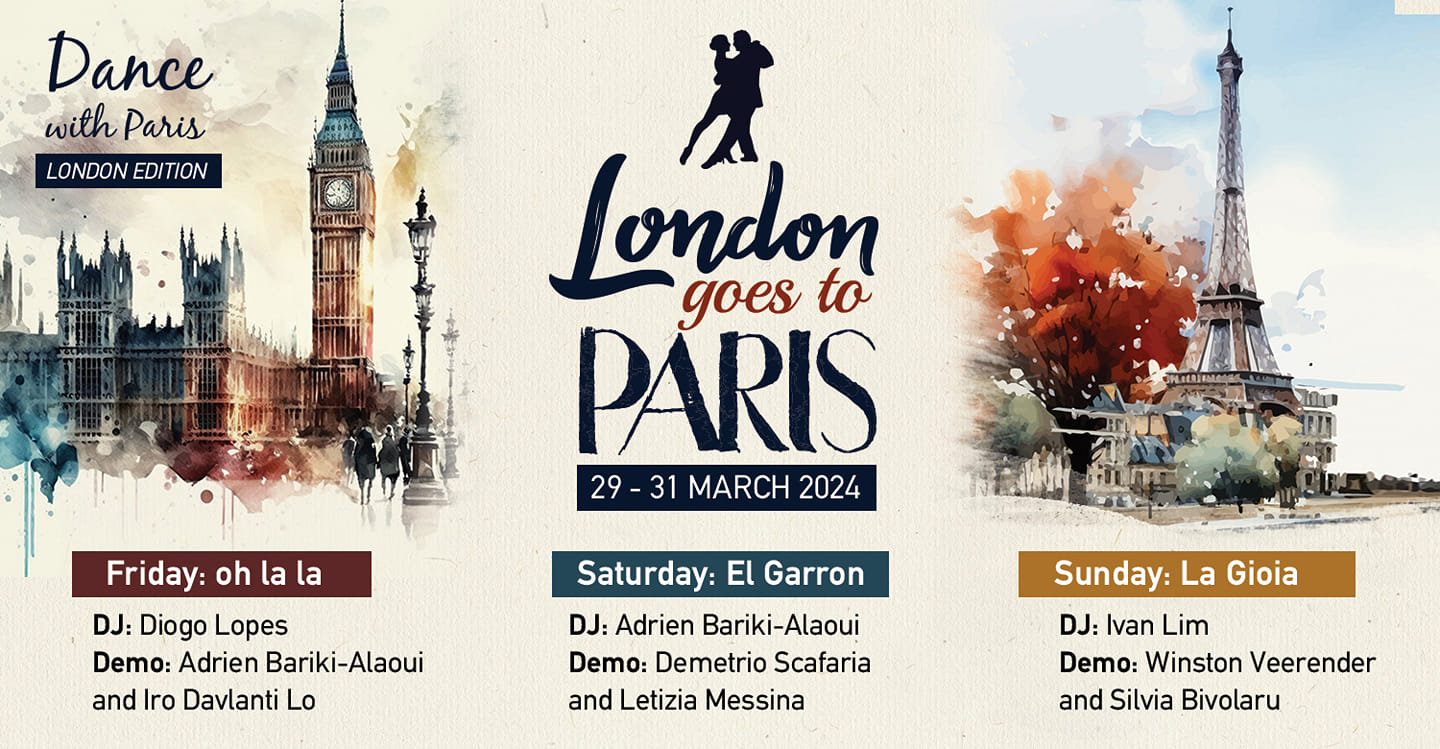 We worked hard behind the scenes to bring back the London – Paris collaboration by working with different organisers in Paris and here in London. This has resulted in creating two amazing weekends of Tango that are coming up soon. End of March, we go to Paris to DJ in their Milongas and perform there too. The Parisian Milongueros will then come to London to return the favour at the end of April by bringing their DJs and performers. Of course, these weekends are for the community! Please do come along and travel with us to Paris and be there in London to welcome the Parisian crowd.